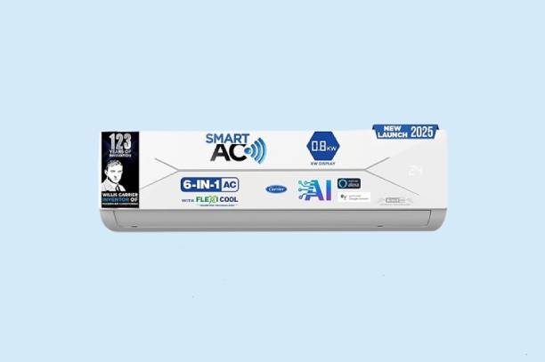 Carrier 1 Ton 3 Star Wi-Fi Smart Flexicool Inverter Split AC (Copper, Convertible 6-in-1 Cooling,Smart Energy Display,HD & PM 2.5 Filter)